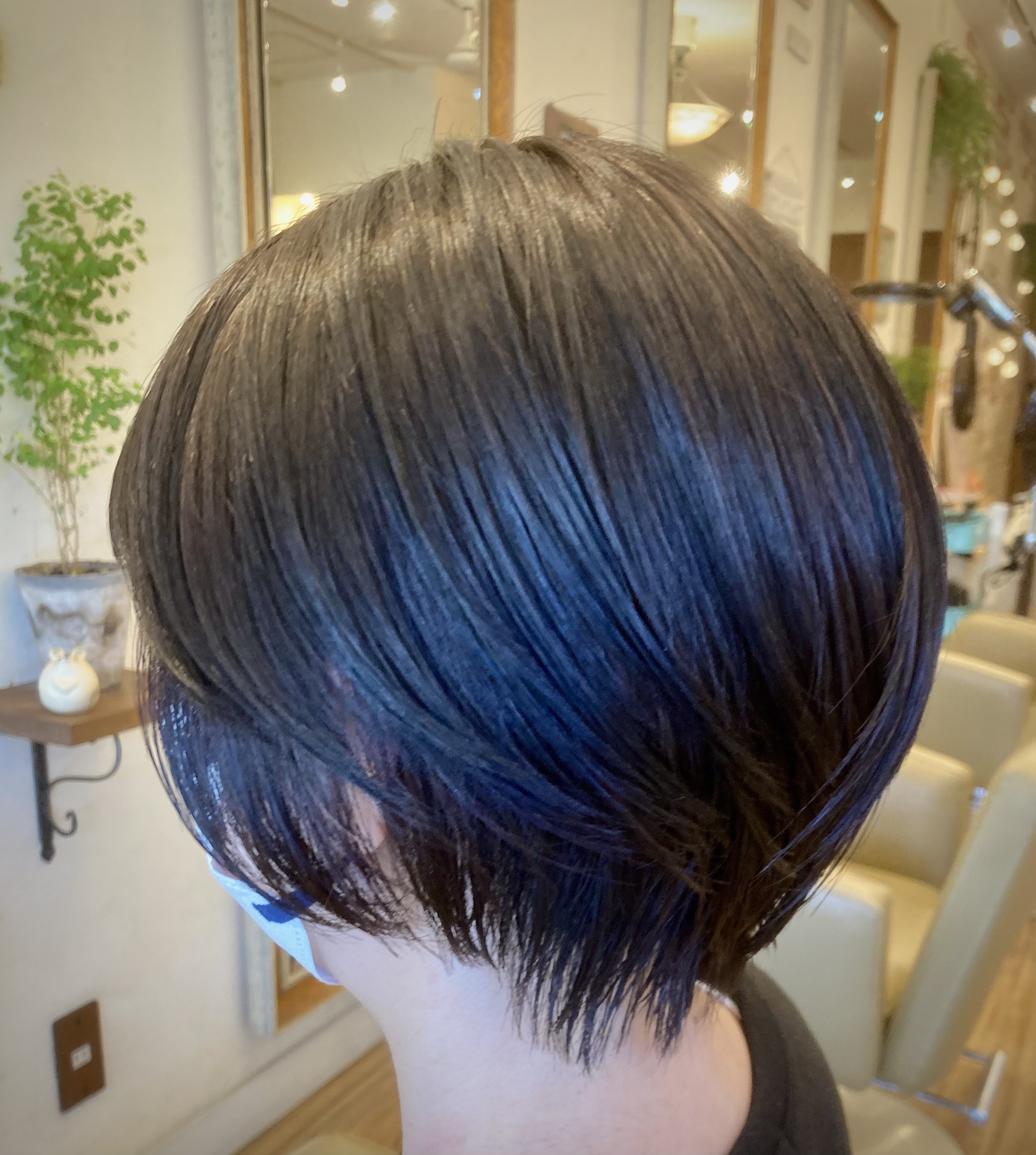 すっきりとしたフォルムに、軽やかなラインの美しさ。 首元をきれいに見せるシルエットで、横顔まで印象的に。 忙しい日常でも光る、大人のためのショートスタイルです。